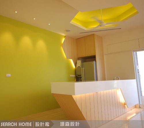 青蘋果綠搭配燈光照明,讓商業空間呈現明亮、舒爽的感覺。