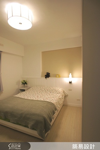 臥室有些許鄉村居家語彙,粉嫩色調讓舒眠品質更好。