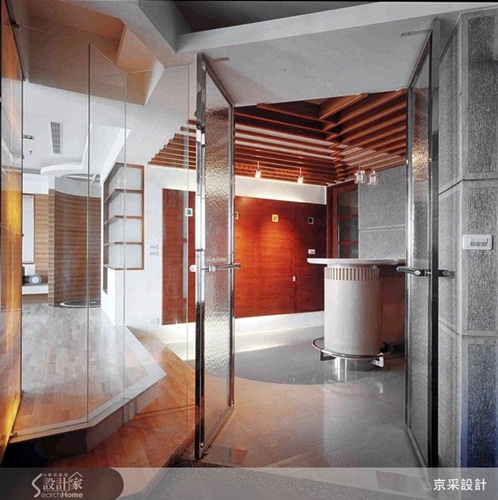 在空間風格的營造上,藉由木地坪與天花板的格柵設計,將休閒質感帶出,而大量的玻璃隔間,不僅讓自然光可進入室內創造明亮的視覺效果,無形中也放大空間,營造可紓壓的生活場所。