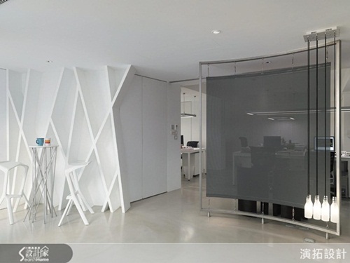 這是演拓設計去年完成的新辦公室,以大量的白色營造出的主題空間,在簡潔明亮的風格下,一改當代許多人認知白色極簡風,容易帶來的冷調空間感,從進門開始,待客大廳利用枝狀牆體和金屬網牆,給觀者帶來一股視覺衝擊和新鮮美感。