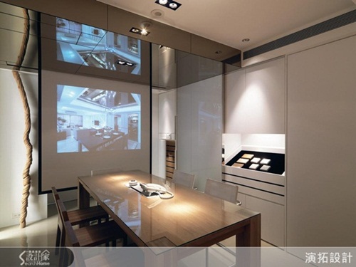 會議空間規劃了強大的隱藏式視聽功能,也可同時是作品和建材的最佳展演區。