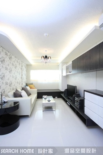 面窗引進戶外的自然光,揮別灰暗的先天缺陷;唯一的1廳-客廳,以白與黑作為主要顏色,巧妙使用兩色的比例,加上間接光的配置,讓空間瞬間拉長、變寬。而