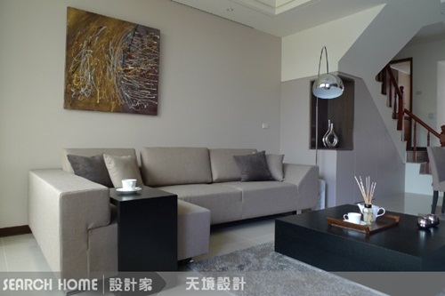 秘技3 善用空間擺放立體物件 立體物件不論是雕塑品、裝飾或者是花器,都可善用較為零碎的空間作為擺放場所。此處設計師除了將樓梯下方的空間作為儲藏室,同時也讓出一角作為擺放裝飾品的位置,讓空間的視覺效果更豐富。
