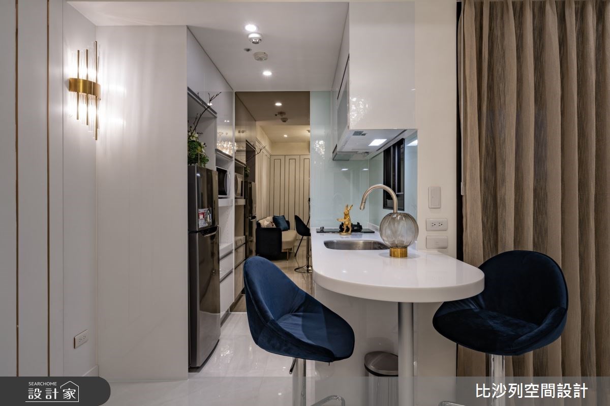 講到新古典、奢華風,腦海就會浮現百坪以上的超大豪宅,但其實中小坪數的居家也能實現如此華麗的空間風格。26 坪混搭風美宅透過大量的線板、鍍鈦金屬和大理石等建材,翻新 2 房 1 廳的舊屋格局,不僅呈現出高機能的臥室配置,還可以擁有優雅客廳、圓弧吧台,讓屋主沉浸於異國風的質感生活裡。