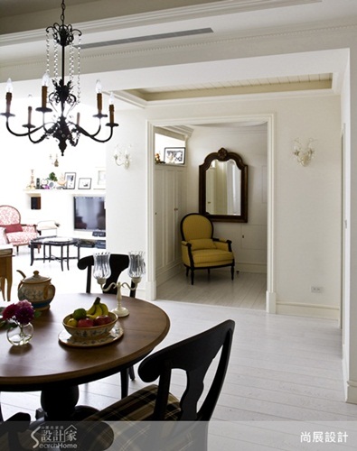 別 再說鄉村風與華麗、質樸無法畫上等號,本案給了最完美的解答。本案屋主喜歡低調帶點華麗的居家,便將風格定調法式鄉村風,但為了能展現風格的質樸感受,尚 展空間設計設計師吳啟民特別讓整體空間回歸白色基調,藉由傢俱傢飾的搭配,散發濃濃鄉村感的同時,又能表現出清麗質樸的味道。 吳啟民設計師認為傢俱家飾配置是成就風格的重要推手,於是他為屋主挑選古典風格傢具,像是造型吊燈、法式圓背椅、碎花壁紙與窗簾等,這些傢具傢飾在純白空間裡,盡情展演法式鄉村雍容、華麗姿態外,素雅顏色不過度誇飾的線條,則是將質樸感表露無遺。 另外,吳啟民也在整體中營造手感與清亮效果,像是餐廳牆面就不同於傳統做法,兩面以文化石來做包覆,濃濃的鄉村感自然散發之餘,也讓加深空間的手感設計;而客廳沙發後的法式格窗,原本僅作為界定書房與客廳空間使用,加入了燈光照明後,當燈點亮也為空間帶來輕盈明亮感。