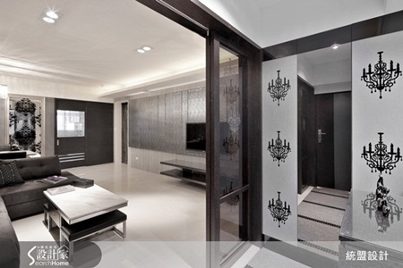 聽小編說案例: 統盟室內裝修以低調奢華為設計主軸, 運用材質延伸出豐富的情境層次, 在精緻時尚的設計雕工中蘊藏機能設計, 不斷嘗試新建材開發與材質變化創意用法, 從玄關的古典水晶吊燈剪影鏡面, 到客廳的巴洛克黑白鏡面, 再連結到牆壁上反射巴洛克花紋壁紙, 這樣的氛圍及語彙一路串聯到餐廳, 讓這個作品有別於一般新古典空間, 展現超越質感的驚艷創意。