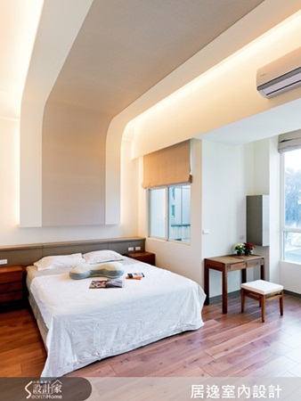 秘技4 善用色彩柔化空間 有時候限於建築空間的條件,臥房可能較容易受到光線影響。設計師在此處結合雙層窗簾的使用,一方面解決光線帶來的問題,一方面色系選擇也有柔化視覺效果的功能,讓臥房更能帶出舒適而溫柔的氛圍。