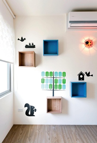利用壁貼轉換空間風格 小孩房的設計強調高度的變化性,譬如學齡前小孩房,強調空間的遊戲功能;學齡後,則會逐漸偏向給予小朋友一個安穩的閱讀及睡眠空間。因此,建議不做壁面造型,而是搭配各式壁紙、壁貼,甚至是窗簾,在不同時期進行整體空間氛圍的形塑。