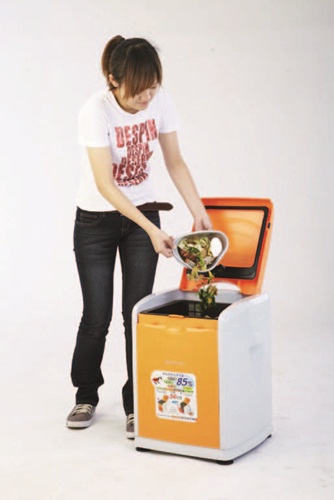 機」,利用酵素分解。強調能為家中廚餘減量85%,7日後便可分解成為廚餘土,透過機器內旋轉槽設計,用推倒方式取土,更衛生乾淨。廚餘土堆置30天之