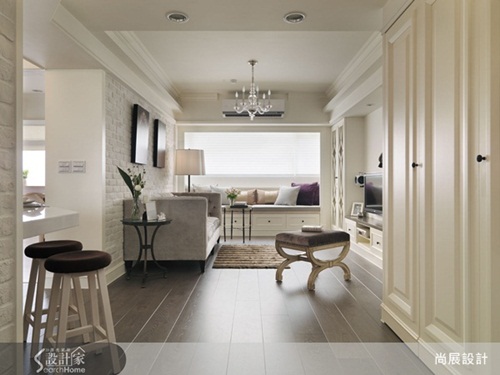 設計公司:尚展空間設計 設計師:吳啟民 設計風格:美式風 房屋狀況:中古屋 座落地點:台北市 空間坪數:20坪 主要建材:文化石、線板