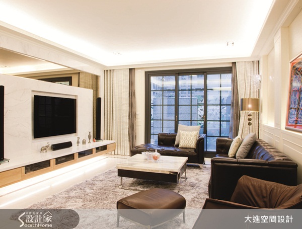 乍看,空間彷彿已完成,但設計師卻預留伏筆,為的就是要讓屋主用自己的態度繼續完成下去。從制式中尋求設計的突破本案為78坪大、雙層樓的住宅空間,居住人口為三代同堂,因而在空間上有一定的需求。兼具公私領域的1樓,除所需的玄關、客餐廳、廚房之外,還包含了孝親房與客房,因此,以開放式設計手法來規劃公領域,藉由開放張力拉大視野,同時也消弭其他空間、結構所帶來的侷限感。至於2樓,完全屬於屋主夫妻與小孩,規劃時便依使用屬性來界定格局,滿足空間的使用性。 另原建商已在地板上鋪設拋光石英磚,設計師選擇沿用之外還做了點巧思,以切割滾邊方式,不僅替地材換上新容顏,同時又有區分空間的作用。 讓相異風格能夠共生共容至於針對新古典風格和鄉村風格的融合,則以新演譯方式來呈現,前者以客廳為例,以獨特大面線板烘托,表面還浮雕出立體線條層次,看似隨意置於壁面,但卻是散發一種淬練過後的古典味道;電視牆也選擇以大理石來鋪陳,自然細緻的紋理,低調而溫柔的中和全室色溫,讓古典氛圍再度以不同方式做到渲染與擴張。而鄉村風格的質樸則是在2樓起居間表露無遺,布質沙發、單椅與窗簾布料相輝映,醞釀悠閒的鄉村風情,大量木質櫃多少也讓風格更形質樸與手作感。 大進設計在制式格局中,發揮設計讓空間開闊、動線流暢,運用簡潔線條加強立面層次感,輔以低彩度、大地色系來烘托風格上微妙的平衡。整體看似完成,但其實還預留伏筆,設計師希望空間和屋主均不被風格所綑綁,而是在留白處增添自己的味道,營造自己想要的風格,讓這個未完成在日後更加完整。 Before 找到同一空間擁有雙風格的平衡 本案為雙層樓的住宅空間,由於屋主曾於澳洲留學,被當地新古典及鄉村文化所深深吸引,希望能讓空間同時擁有這兩種風格 After 好住需求清單 讓新古典與鄉村風格能相融合