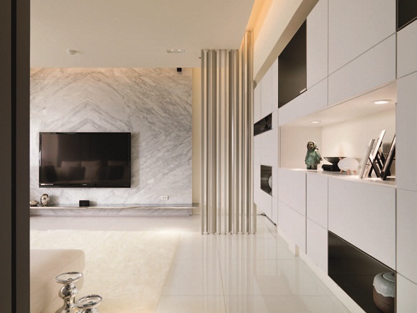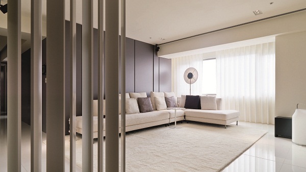 1.有鑒於女屋主不喜歡木頭質感,公共空間因而強調以米、白、灰等色,搭配鋼琴烤漆和鐵件等材質進行設計規劃。