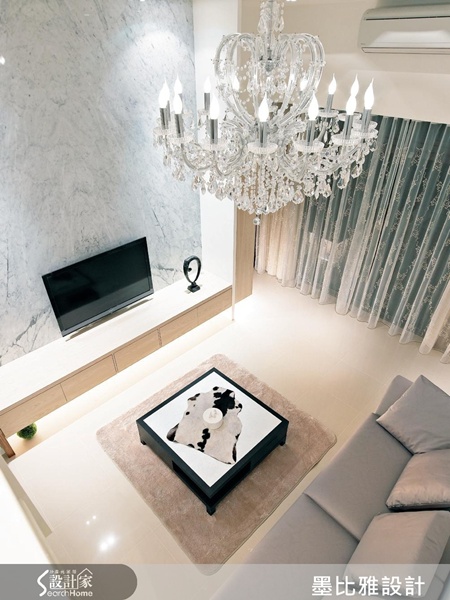 華而不實的裝潢設計容易令人厭膩,低調奢華的精緻品味則可讓人再三玩味!本案以現代都會作為風格定位,客廳以一展華麗高貴的大型水晶燈創造出精品住屋的質感,墨比雅設計盧錦煌設計師簡化空間線條,客、餐廳採開放式設計,將最大的空間還給居住者,並且巧妙搓揉現代與新古典常用的元素,如白色、木質、烤漆玻璃、大理石、鱷魚紋皮革,營造出一場不同凡響的視覺盛宴! 除此之外,設計師也以飯店式房間設計的概念出發,為每一位居住者量身訂作出不同風格的私人空間,採用不同的光源設計和造型吊燈,展現出獨特的氣氛;而在公共使用的餐廳和視聽兼客房空間,以最符合都會時尚感的黑與白作為主要色調呈現,一方面傳達出現代的摩登感,一方面也顯示屋主的絕佳品味。