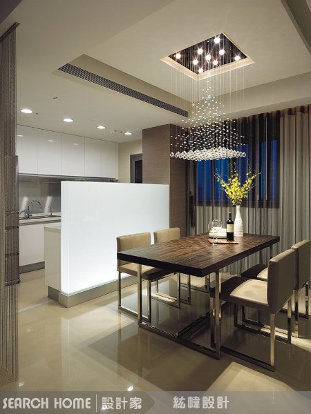 因為質地光亮高雅,加上易於清潔保養的特質,拋光石英磚是現代風格家居裡常見的地板材質。例如本案餐廳空間即選用了拋光石英磚來鋪陳地坪,襯托出空間中清爽而高雅的個性。