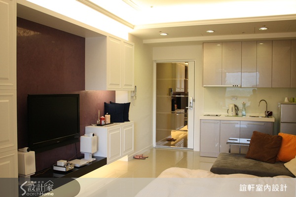 說到小坪數住宅,多數人總會擔心居住時實用度夠不夠的問題,其實只要透過妥善安排,還是能創造出「麻雀雖小、五臟俱全、實用度高」的居家形態唷!本案位於新北市淡水區,是屋主買來作為度假用的小屋,雖說作為度假之用,但依然希望美觀之餘,也能兼顧實用性。 負責規劃的誼軒室內設計主持設計師蔡宜樹接手後,決定讓這6坪大的空間,以現代風格來呈現,大量運用噴漆、鏡面素材,不僅能讓空間顯得利落,也能有放大效果。至於在機能安排上,自玄關進來後,即用一字型廚具與吊櫃,規劃了簡易的廚房,一旁則為客廳,接著則是臥床區和衛浴區。國人最害怕的收納問題,設計師也考量到了,除了應有的收納櫃之外,電視牆也依櫃體來呈現,賦予屋主充沛的置物空間。