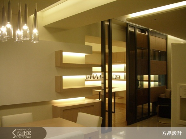 將燈具隱藏在較低的天花板上,有助拉高視線,而製造出的間接照明也能以平均柔和光線呈現。另外,天花板可以保持單純不需要掛著一些瑣碎的燈具,展現簡單的設計。