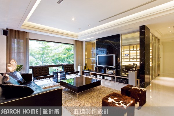 本案空間以現代風格為主,主要訴求高雅的生活品味。設計師以象牙白搭配深黑色系,營造出穩重的生活氣氛,並且在客廳與餐廳之間設置一道雷射切割而成的鐵件屏風,更為空間增添幾分得宜的時尚質感。