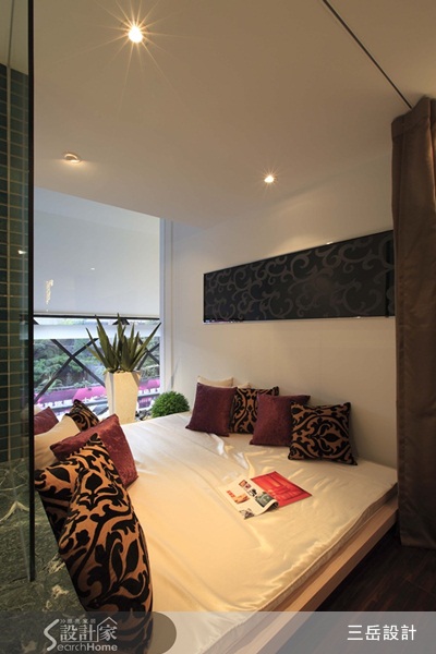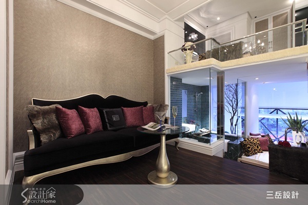 這間座落在台北市其實只有12坪的小公寓,是身為單身女性屋主犒賞自己的一份禮物,屋主希望回到家中仍能呈現一種奢華的空間感,所以在大面積開放式空間裡面,選擇以黑、金高貴色系做為軟件元素,而為了避免掉不樂見的擁擠現象,設計師改用小而精緻的圓桌代替大面積的方桌,更能凸顯居住者的優雅與愜意。 雖然坪數偏小,但由於挑高夾層屋的特性,加上設計師以玻璃做為浴廁隔間,讓進門後迎接的整體空間,提升了更高的穿透性與明亮感。浴廁規劃採用了方而寬敞的浴池,貫徹了奢華訴求,窗外設置的庭園造景延伸至一旁的多功能休憩區,屋主可在其內消磨泡澡完盡情發呆的沉澱時光,若呼朋引伴至家中,也可做為客人休息區,貼心規劃出小坪數不可多得的偷閒機能。 臥房仍維持寬敞與整齊空間,安置收納式的衣櫃,讓女性永遠少一件的衣服不會因凌亂而讓居家環境扣分。背牆上的造型燈,則畫龍點睛增添了一份女性的細膩感,本案全裝潢花費不到100萬,卻將飯店式的享受牢牢鎖在家中。