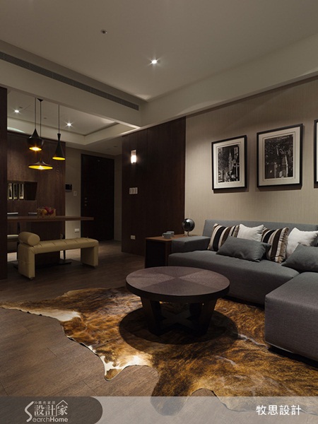 本案好宅重點_取消一般認為空間應以走道串聯格局的思維模式,以開放式手法構造整體動線,營造完美時尚都會感家居! 本案屬於新成屋改造的案例。在僅有18坪的空間裡,建商將格局規劃為三房兩廳兩衛,反而將坪數切割得零零碎碎,各個空間也過於狹小,不敷使用。因此,屋主請來牧思設計程智祥設計師重新規劃格局,並且期望新家空間可以展現沉穩大器的個性,並擁有現代都會的新穎質感。 為了解決空間格局過於零碎的問題,程智祥設計師採取的對應策略是取消空間中的走道空間。在一般的格局規劃裡常會以走道來串聯格局,無形之中卻也讓空間分散並形成浪費。因此,設計師改以牆面作為串聯格局的軸心,從電視牆兩側延伸出的拉門設計,分別是進入書房與次臥的入口;而沙發背牆則結合了隱藏門片的設計,引導通往臥室空間的動線。如此一來,客廳空間便取代走道而成為居家核心,不但有效利用空間坪數,同時也讓生活動線得以凝聚。 而在風格營造方面,為了營造穩重的都會氣質,設計師採用個性獨特的色調偏深的建材構築全局,再以明亮大器的石材構成電視牆,讓空間具有亮眼的焦點,成功營造具有現代感的風格居家。