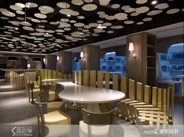 坐落於中國上海的這間義大利餐館,整體以「食」為概念,不只透過線條、色彩和形狀等連結空間主題,吊掛於天花的餐盤、碗般的燈具等,再再營造趣味的想像空間。