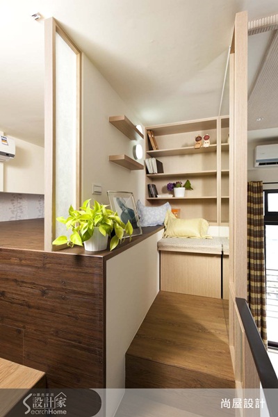 由於本案屋主愛好現代風格,設計師力求空間線條的簡潔清晰,並利用活潑的色調構築整體層次 今天要為大家介紹的案例位在新北市新莊,是擁有3米6挑高的10坪新成屋。由於本案屬於小坪數空間,為了能夠讓空間坪數發揮最大的效益,並且符合生活機能需求,屋主邀請尚屋設計的鄭秋如設計師來打造新居,而本案的主要設計任務便在於機能規劃與風格營造。 在機能規劃方面,設計師首先由格局定位著手。由於空間本身擁有一廳兩房的格局,設計師以開放式手法打造客廳與餐廚空間,將沙發背牆、廚房流理台與用餐吧台整合為同一量體,並且規劃大量的收納櫃體,讓空間層次感更為清爽乾淨;而空間挑高部分的區域則規劃為書房閱讀區與收納空間,電視牆後方的房間則是臥室,流暢的生活動線讓居家環境更為舒適。 由於本案屋主愛好現代風格,設計師力求空間線條的簡潔清晰,並利用活潑的色調構築整體層次。客廳牆面以明亮的天藍色構成,為空間注入愉悅的自然調性,搭配大量木作櫃體的咖啡色調以及米白色的電視主牆,予人簡單而優雅的感受。