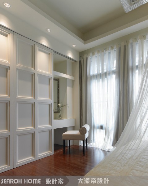 新古典風格講求細膩而寧靜的空間氛圍,設計師以白色作為空間整體的主要色調,配合充足的採光,讓整體感看起來明亮又寬敞,搭配線條感優雅的傢飾家具,立即展現不同凡響的設計品味。