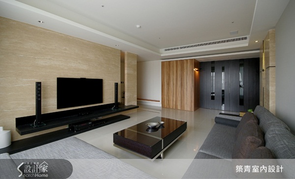 現代簡約空間的天花板通常維持全白、素雅,但在局部空間可以有些變化,譬如藉由天花板的木皮運用,讓原本平凡的走道空間也能成為空間中的一個視覺焦點。