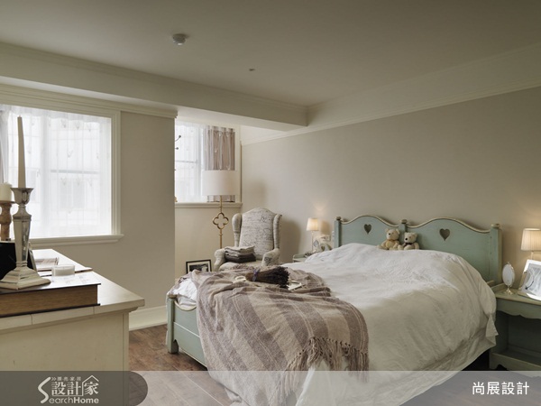 臥室空間以清爽的白色為主要色調,讓溫暖的軟件傢飾成為空間的主角。面光角落的單椅是最適合閱讀與沉思的場所。