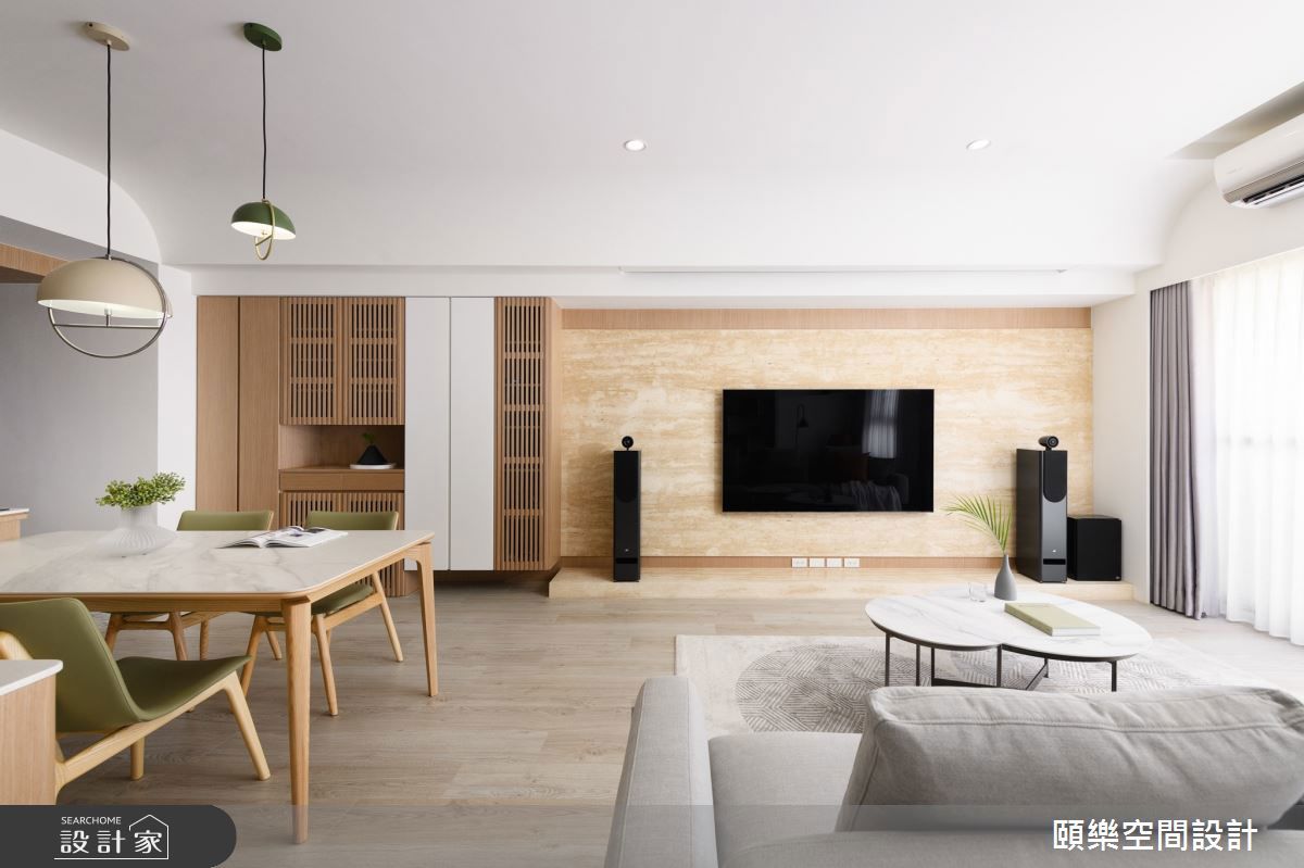 鍾情於日式人文風格的屋主,購買桃園新成屋後,身為牙醫的屋主,喜愛看電影、烹飪下廚,希望放大公領域,完善的觀影體驗,寬闊的空間可以與親友相聚,並放大更衣室,經與設計師溝通需求後,設計師微調格局,打掉兩面牆,將原本3房2廳的格局改造,釋放空間給客廳書房及更衣室,巧用多元異材質拼接、格局妥善分配、美型展示收納等,讓新家不僅具有美感,更滿足收納機能與動線的需求,實現兩人的理想生活。