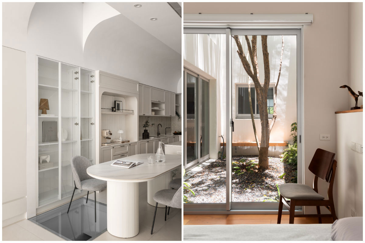 以「家族主樹」為概念,在中庭種下一棵光蠟樹,把日光與綠意自然注入室內,成為全宅的核心風景。