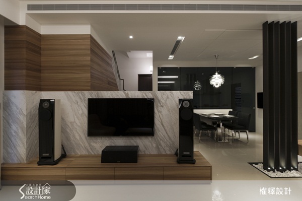 為了維持客廳與餐廳之間的開放視野,設計師特別將電視牆的高度減半,不但界定了各個空間,同時也保留了通透的視野,而空間的層次感亦由此層層導出,展現設計師獨到的設計功力。