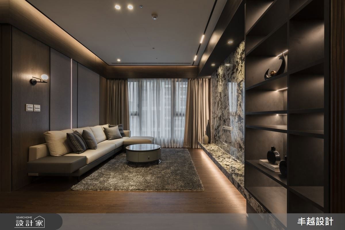 在本案中大量使用深色調的素材,藉由木紋、石材等異材質的層次搭配,營造出低調穩重、質感及奢華的質感,搭襯著光影的感性變化,呈現獨特的肌理變化,挹注精緻不凡的生活品味。