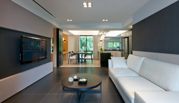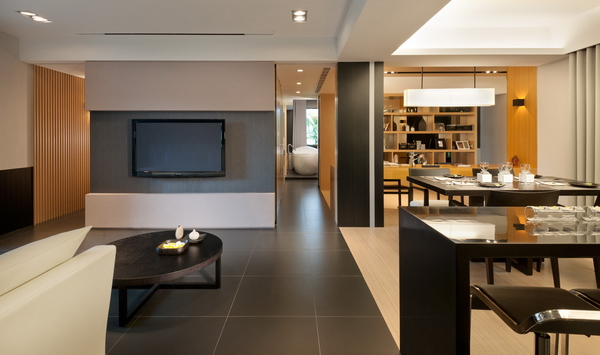在風格設計上,以客戶偏好的木質溫暖與溫潤感為主。以深沈的灰黑色,深灰藍色等,加上白橡與柚木兩種深淺不同的木頭,以及淺灰色調,作為本案的基調。並採取現代簡潔融合人文的風格,創造出一個休閒,舒適,寧靜,又與自然合一的美好居家。是深具生活品味的都會新貴最喜愛的住宅設計經典代表作。