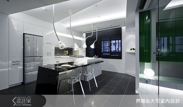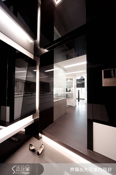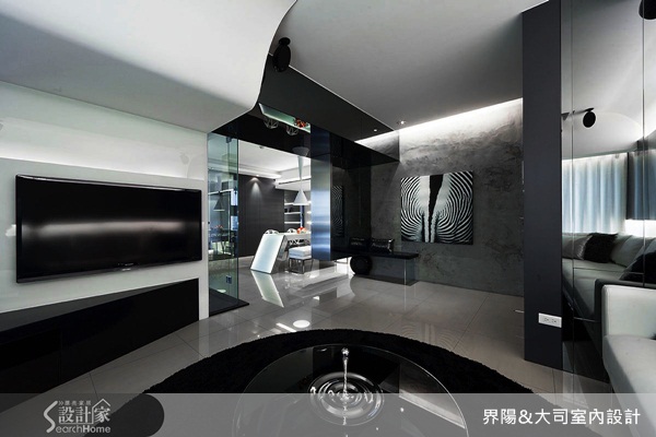 除了利用造型設計,藉由材質表現,也能擦出不同火花!設計師在天花板處使用了黑色玻璃,除了運用其反射特色,創造延伸感之外,具時尚感的黑玻璃,也幫天花板引出迷人氣質。