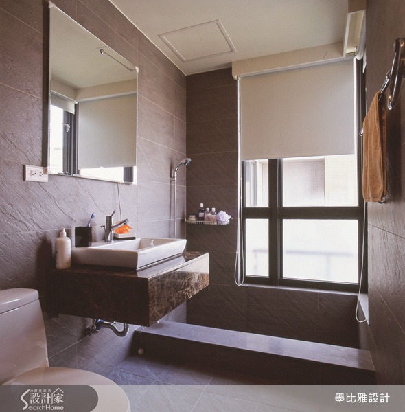 屋主想要泡湯,只要回到家就可以。在此處設計師以降板浴缸的設計搭配板岩磚,營造出日式湯屋的氛圍。