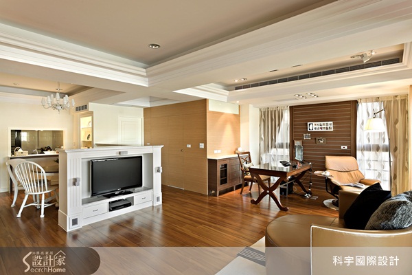 有些屋案礙於原本建築規格的關係,在樓高不夠高的情況下加上樑柱交錯,空間感難免會有壓迫感。本案屋主喜愛新古典風格的典雅高貴,也希望新家能有悠閒舒適的氛圍,因此委託科宇國際設計負責新家裝修。設計師為了讓格局更符合屋主所需,因此重新調整空間配置,並藉由線板與造型天花板的設計,解決樑柱帶來的視覺壓迫問題。