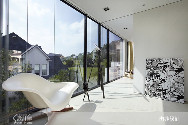 除此之外,設計師掌握了屋案所擁有的採光優勢,利用大面落地窗完整引入室外採光與景觀,讓自然風景圍繞著生活的每一時刻,讓心靈從封閉單調的都市生活裡得到解放。