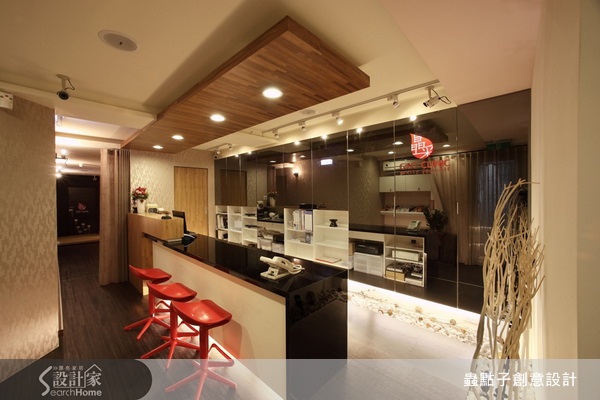 使用一片木板做為燈光陳設的輔助,不僅讓天花多了份造型,也因燈光的照射,讓下方達到了集中效果,可用於吧台、餐桌或是臥榻之上。