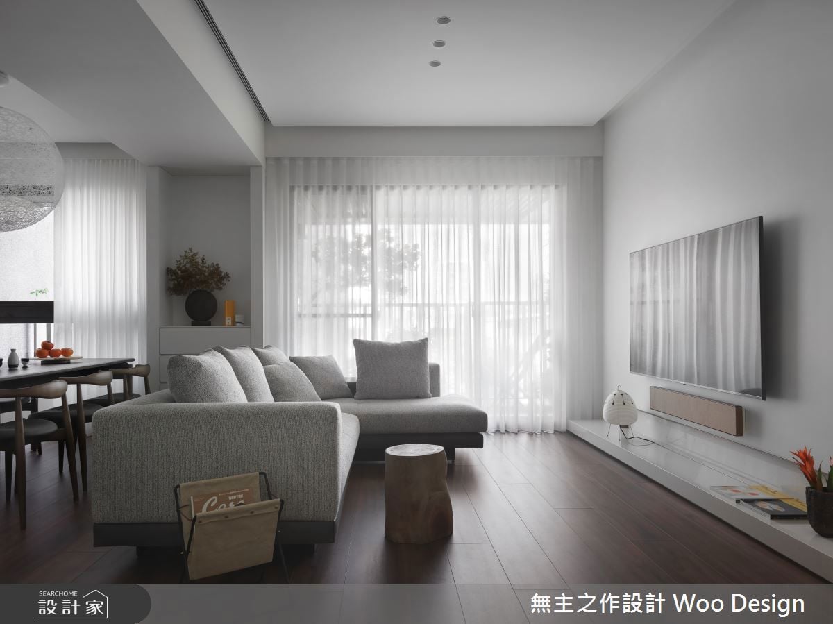 裝修不一定要做到滿,適度留白,也是一種選擇。這間位於台中市南屯區的38坪預售屋,屋主是一位品味獨到的女醫師。比起傳統做好做滿的裝修方式,她更希望未來的家能像一張純白畫布,透過精心挑選的軟裝,為新家增添風采。無主之作空間設計以雲舞白搭配深色木質超耐磨地板鋪敘空間基底,勾勒出現代簡約的居家樣貌。