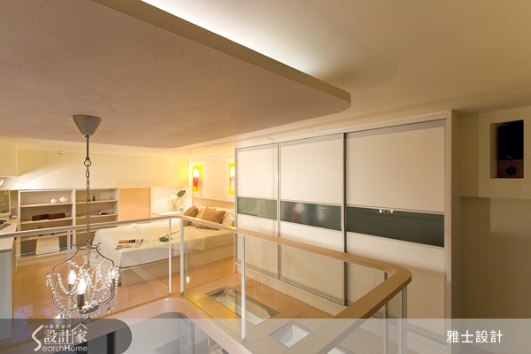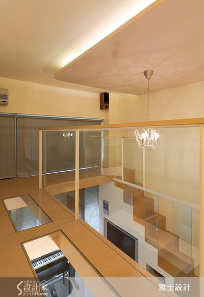 雖本身為小坪數住宅,藉由設計師以強化玻璃鑲崁的手法,產生上下層間的穿透感,並運用設計方式,將空間中塑造出大量動感與空間感,讓空間被活用且不被壓迫。