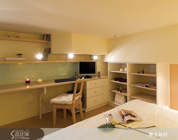 在二樓臥房旁,設計師替屋主設計了一個小型的工作區,狹長的桌子能讓屋主自在運用,並且能享受起床即可上網或是閱讀的便利性,而每個機能都仍能保有足夠寬敞的視覺空間,為一設計師貼心規劃的好設計。