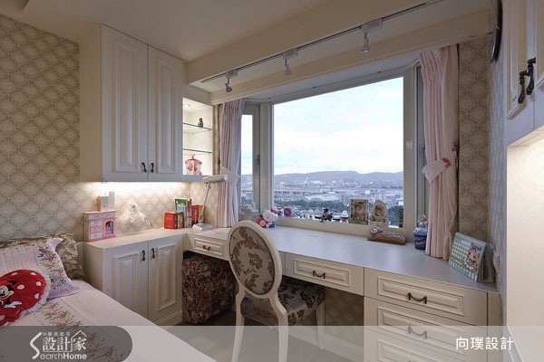 不浪費案例本身擁有的絕佳視野,女孩房書桌前的大面開窗,既引入充足日光,也能飽覽窗外美景。
