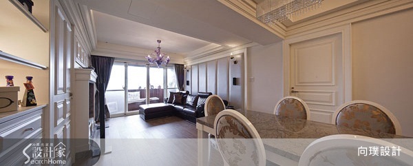 開放式餐廳延伸客廳的櫃體設計,配上一系列同類型風格家具和水晶燈裝飾,簡單就能帶出古典的優雅與貴氣。