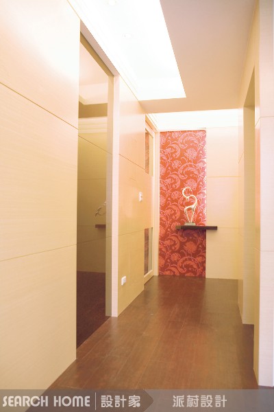 可塑性極高的壁紙也可以當成藝術品般妝飾空間,挑選圖紋較為強烈的壁紙,運用在廊道端點,與藝術品相襯,有畫龍點睛的效果。