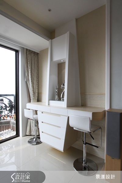 鄰近採光面的區域最適合規劃為閱讀空間,因此設計師將落地窗旁的空間設計為兼具展示、收納、吧檯等三種實用機能的櫃體,不但讓空間功能更加多元便利,櫃體的獨特造型也為空間帶來設計感。