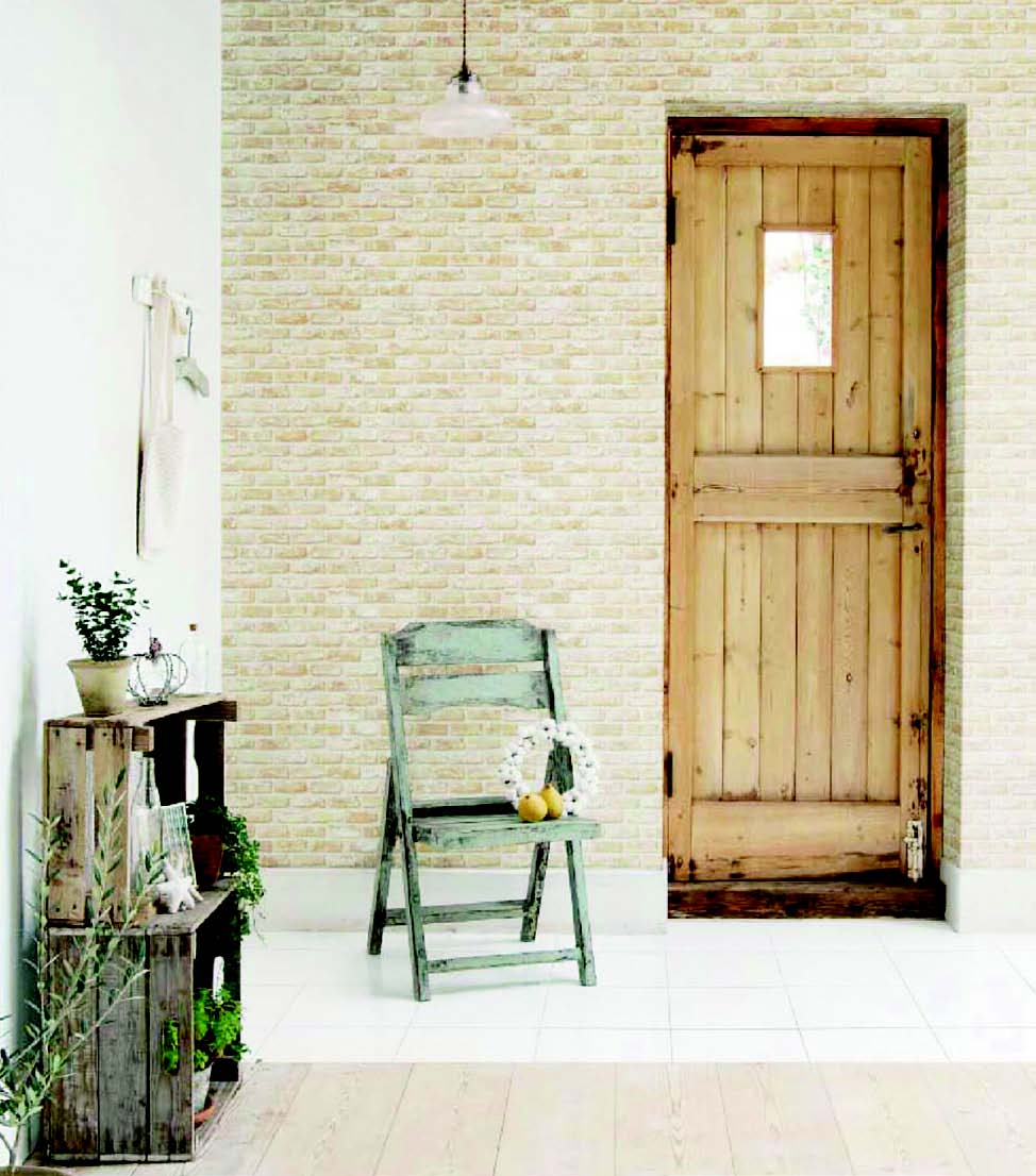 表面粗糙,帶有自然時間感的文化石磚牆,不僅施工需要較長時間,日後維護也較困難,因而也有人會選擇以壁紙方式替代。這些擬真性極高的文化石壁紙,隨著壁紙工藝技術進步,甚至表面觸感也能模擬,雖然仍不能完全替代真正文化石磚牆質感,但也具有相當以假亂真效果。