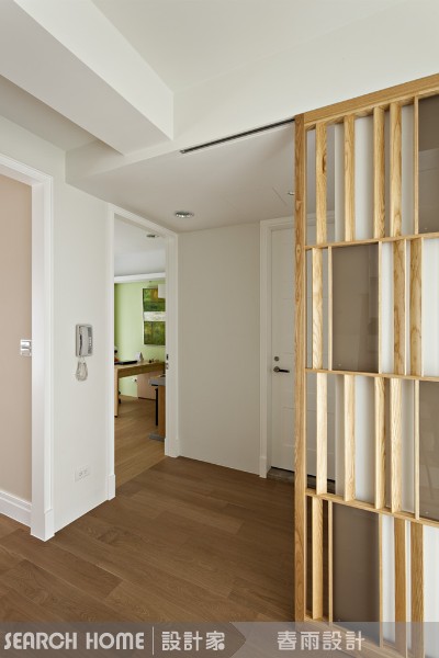 拉門設計也是很棒的隔間提案之一,本案選擇以木質格柵搭配灰玻來構築拉門材質,為空間帶來一種虛實互映的美感,並且在不同材質的對話之間,尋求更多美感激盪的可能。
