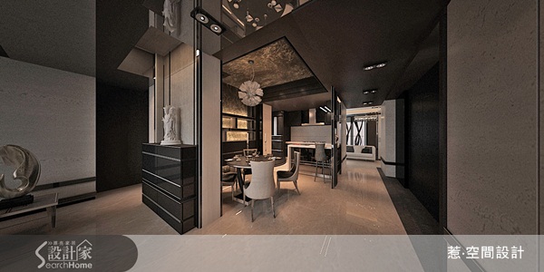 材質也是表現深色時尚的好方法之一,空間中可適度加入黑色烤漆玻璃,黑色讓空間充滿力量之外,材質本身也充滿著時尚味道,不僅成功的替創造出深色時尚之外,置身於其中也能細細品味。