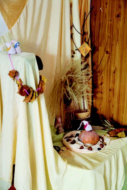 華德福教育運動的中心思想植基於魯道夫‧史代納( Rudolf Steiner ,1861 ~ 1925 ,生於奧地利)自創的人智學( Anthroposophy )。這是以人類學、發展心理學及生理學為基礎來研究人類的本質。華德福教育就是以人為本的教育,由了解人的精神本質來幫助個體漸漸開展,以及讓成長的潛能能在生命的過程獲得滿足。這個位於玄關一角的四季桌,是華德福媽媽為小朋友所佈置的專屬角落,以大自然「四季」變化為主題,以季節性的植物、飾品、節慶融入佈置中,讓小孩對大自然有更親近的了解。