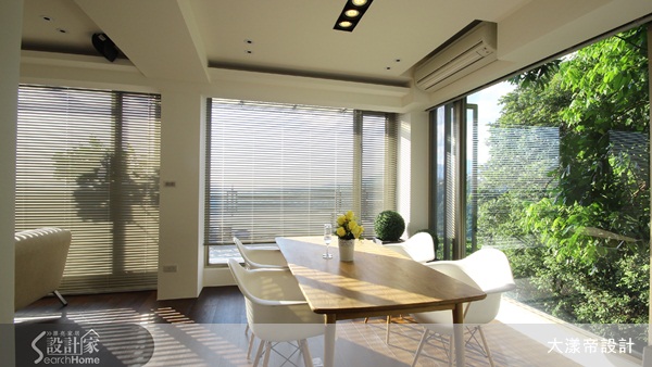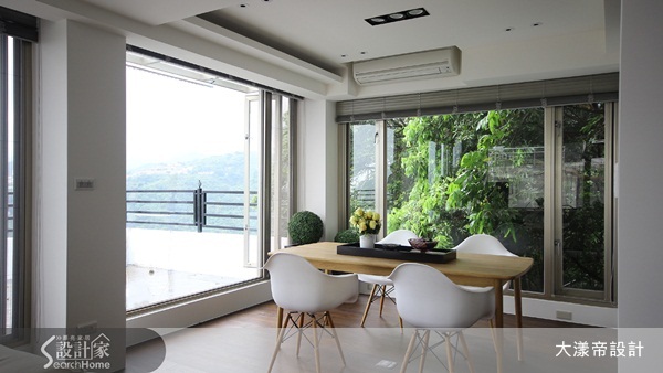 客廳後方的用餐區,簡單擺上餐桌和餐椅,讓山林綠意成為陪伴一家人用餐的最佳佐料。